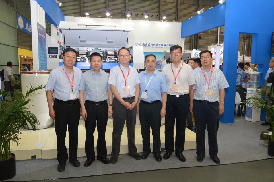 中國紡織工業(yè)聯(lián)合會副會長高勇、楊紀朝等領(lǐng)導蒞監(jiān)公司展位,聽取了董事長沈方勇對企業(yè)及產(chǎn)品等情況介紹,并與公司領(lǐng)導親切合影。