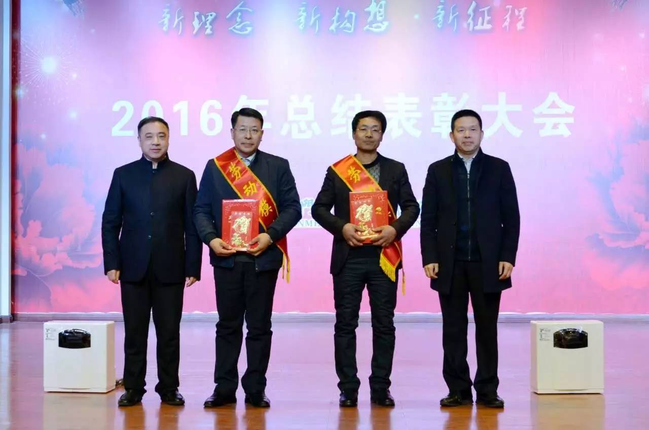 會議由公司副總經理吳慶文主持,公司總經理焦倫進總結了2016年的全面工作,十分中肯地評價了成績,分析了問題;同時,也對2017年的生產經營作了安排和部署。公司黨委書記魯?shù)挛男x了”表彰2016年度先進單位、先進個人的決定”,在經久不息的掌聲中先進集體和個人分別登臺領獎,公司董事長沈方勇為先進單位代表頒發(fā)獎牌和獎金,為勞動模范頒發(fā)獎品、獎金和榮譽證書并合影留念。