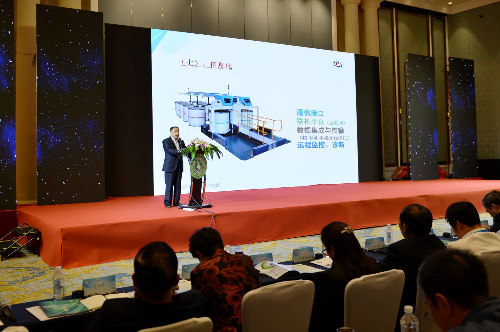 湖北天門紡織機(jī)械股份有限公司總經(jīng)理焦倫進(jìn)在會(huì)上作了題為“棉紡的轉(zhuǎn)型升級與并條的未來”專題演講并介紹了天門紡機(jī)的設(shè)備,他強(qiáng)調(diào),設(shè)備的研發(fā)不是單純的減人增效,而是以人為本,人做不到的,容易出錯(cuò)的環(huán)節(jié)應(yīng)交給智能化設(shè)備。棉紡企業(yè)要求紡機(jī)制造企業(yè)的設(shè)備做到:高可靠性,連續(xù)生產(chǎn)、故障率低;高穩(wěn)定性,運(yùn)行穩(wěn)定、品質(zhì)如一;高速高效,產(chǎn)量增加、節(jié)能降耗。通過先進(jìn)設(shè)備、全流程自動(dòng)化生產(chǎn)線,降低勞動(dòng)強(qiáng)度,提高生產(chǎn)效益。