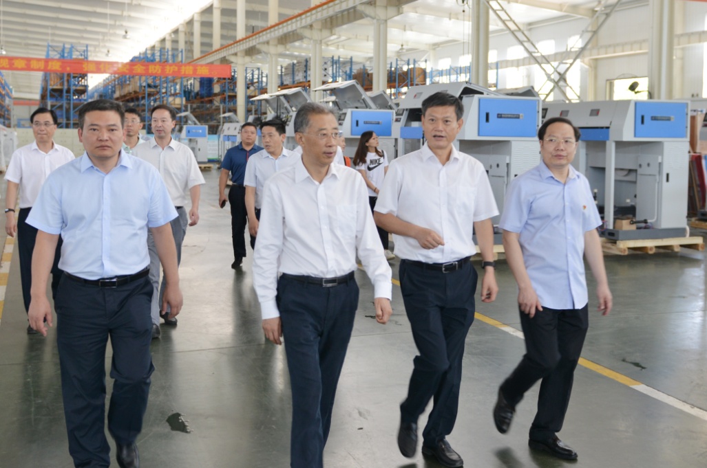 2019年7月10日上午,湖北省委常委組織部長王瑞連在天門市委書記莊光明的陪同下,考察了湖北天門紡織機械股份有限公司。