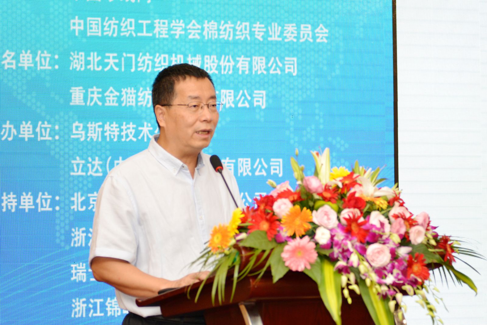 中國(guó)棉紡織行業(yè)協(xié)會(huì)葉戩春副會(huì)長(zhǎng)、中國(guó)紡織工程學(xué)會(huì)棉紡織專業(yè)委員會(huì)副主任兼秘書長(zhǎng)謝春萍教授、湖北天門紡織機(jī)械股份有限公司焦倫進(jìn)總經(jīng)理、重慶金貓紡織器材有限公司楊崇明董事長(zhǎng)等嘉賓分別為大會(huì)致辭。