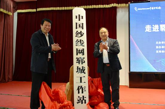 隨后在技術(shù)交流大會現(xiàn)場,鄆城縣工信局丁永華局長、中國紗線網(wǎng)王果剛總編為“中國紗線網(wǎng)鄆城工作站”隆重揭牌。