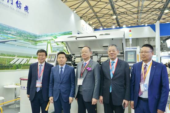 開展首日,中國紡織工業(yè)聯(lián)合會(huì)黨委書記、秘書長高勇,中紡聯(lián)原會(huì)長王天凱,中國紡織工業(yè)聯(lián)合會(huì)副會(huì)長楊紀(jì)朝,中國紡織機(jī)械協(xié)會(huì)會(huì)長顧平,中國紡織機(jī)械協(xié)會(huì)總工程師祝憲民等領(lǐng)導(dǎo)蒞臨天門紡機(jī)展位參觀。領(lǐng)導(dǎo)們近距離感受了天門紡機(jī)最新技術(shù)及設(shè)備,通過了解企業(yè)的設(shè)備性能及其工業(yè)設(shè)計(jì),對企業(yè)的技術(shù)水準(zhǔn)予以了肯定。
