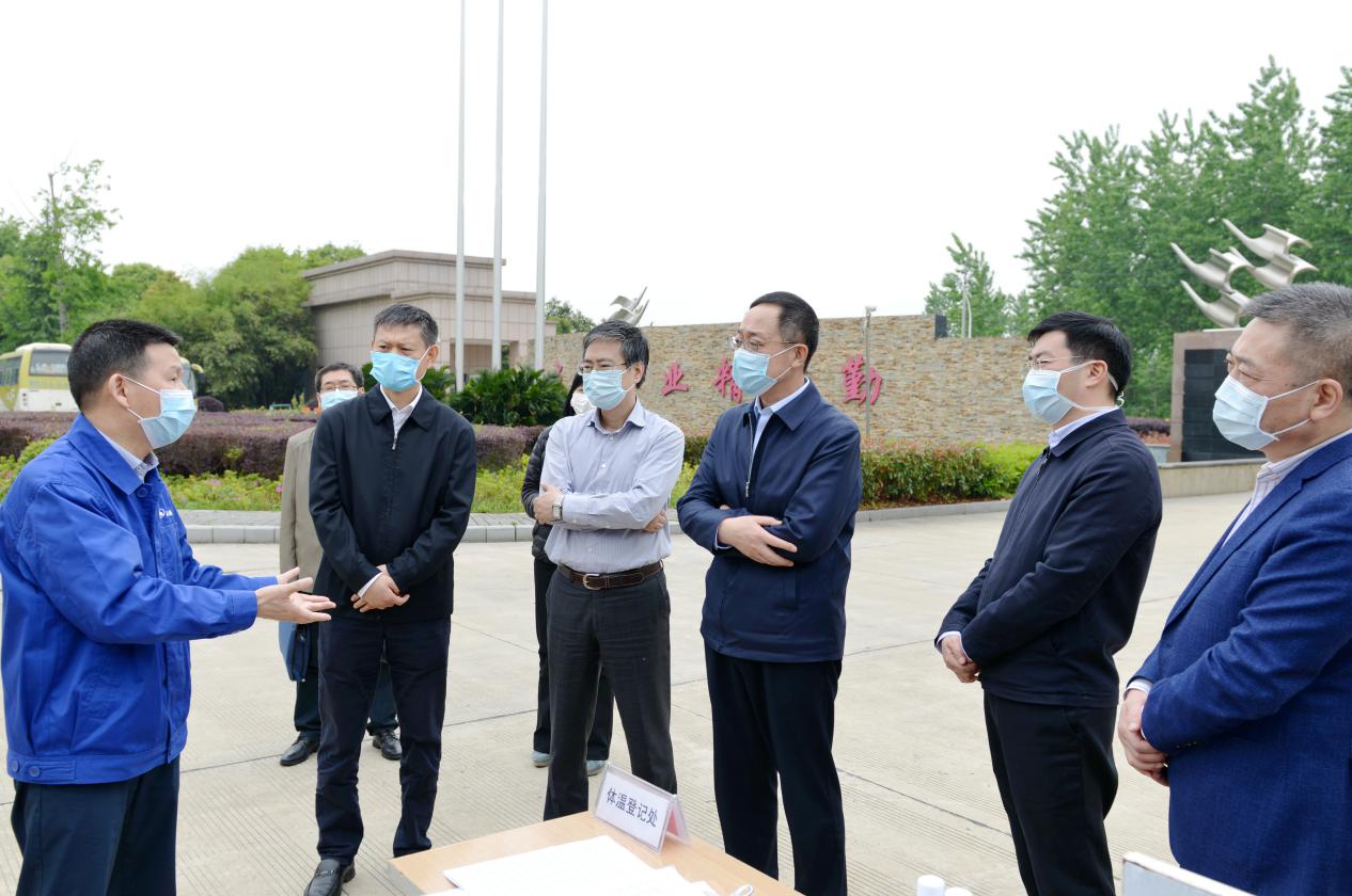 4月23日,國家衛(wèi)健委副主任于學(xué)軍率工作組,在湖北省衛(wèi)健委副主任涂遠(yuǎn)超、天門市委書記莊光明、天門市代理市長楊興銘等領(lǐng)導(dǎo)的陪同下,到天門紡機(jī)調(diào)研指導(dǎo)企業(yè)疫情防控及復(fù)工復(fù)產(chǎn)情況。