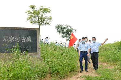 隨后,在謝紅宜鎮(zhèn)長的引導下,黨員們高舉黨旗,踏訪了我國南方最大的新石器時代村落遺址--石家河文化遺址,饒有興趣地觀看了出土的石器、陶器、骨器、粳稻等文物。站在古城墻遺址上遠眺,深刻感受源遠流長的中華文明,激勵黨員堅持道路自信、理論自信、制度自信和文化自信。