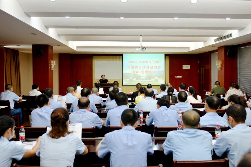 8月25日,“湖北天門紡織機械產業(yè)群質量提升項目”啟動會暨6S管理培訓在天門紡機舉辦,天門市市場監(jiān)督管理局副局長汪茂國主持會議,湖北省市場監(jiān)督管理局二級巡視員劉年生作重要講話,天門紡機董事長沈方勇出席會議,總經理焦倫進代表公司致辭,紡機產業(yè)上下游企業(yè)代表、天門紡機各部門主管、車間班(組)長以及武漢思宇管理顧問有限公司專家參加了會議。