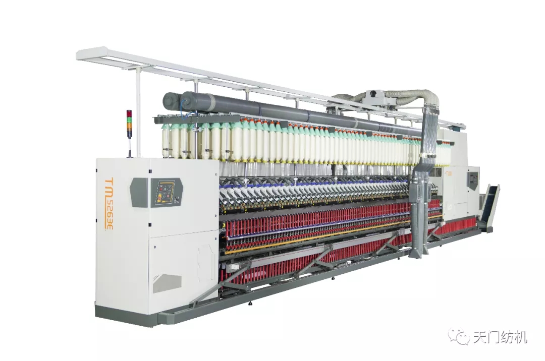 TM5263E型細紗機超長錠數(shù),實紡錠速可達22000轉(zhuǎn);整體機架,新型紡紗斷面;可實現(xiàn)電子牽紳、電子升降、電子加捻、集體落紗;雙頭吸風,直聯(lián)永磁電機,使整機節(jié)能20%以上,配有單錠檢測,粗紗自停裝置;配套零尾紗錠子;可實現(xiàn)粗細絡聯(lián),機臺可聯(lián)網(wǎng)控制和物聯(lián)網(wǎng)。