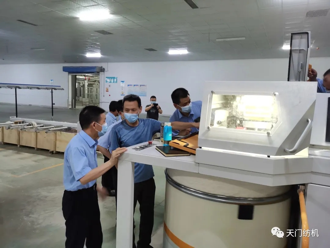 天門紡機“全球首款超大卷裝雙眼高速自調(diào)勻整并條機”—TM19自6月份上海展會首次亮相后,已布點在不同客戶處并線試紡3月有余。為了解該機并線后的真實使用情況,9月18日,天門紡機董事長沈方勇、總經(jīng)理焦倫進帶領技術(shù)研發(fā)人員組成的TM19評估組,專程赴卓爾天龍紡織公司,現(xiàn)場考察實際使用情況,征求客戶意見建議。