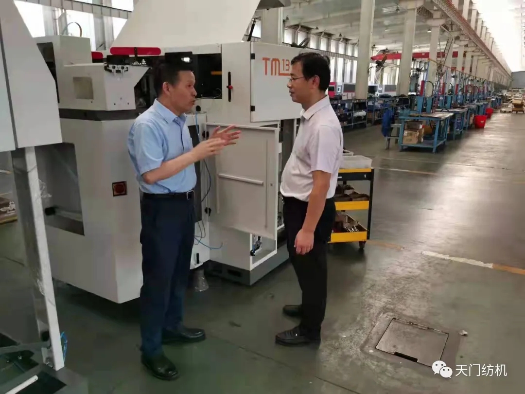 在公司董事長(zhǎng)沈方勇的陪同下,夏局長(zhǎng)一行到生產(chǎn)車間現(xiàn)場(chǎng)查看了生產(chǎn)制造情況,聽取了公司新開發(fā)的TM19、TM13產(chǎn)品介紹,了解了企業(yè)正在實(shí)施的“智慧工廠”項(xiàng)目。夏局長(zhǎng)對(duì)天門紡機(jī)不斷加強(qiáng)新產(chǎn)品技術(shù)創(chuàng)新、推進(jìn)技術(shù)裝備改造升級(jí)給予了充分肯定。