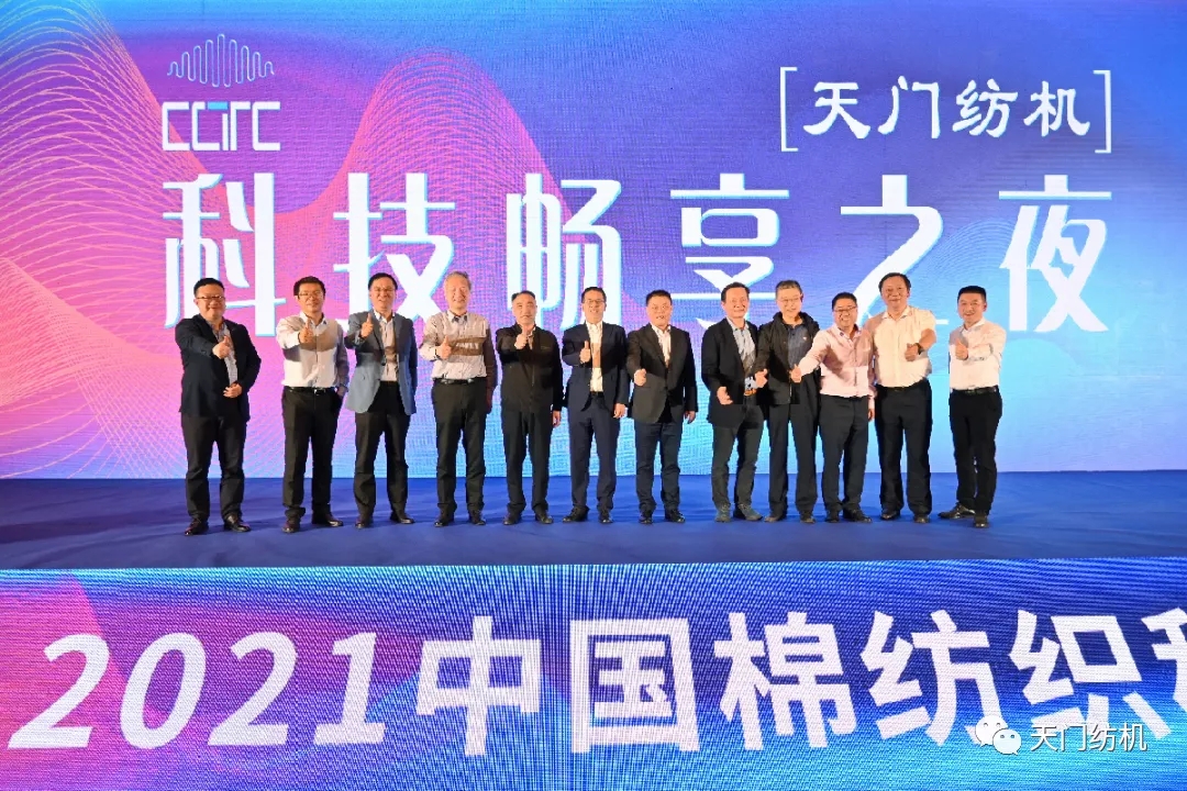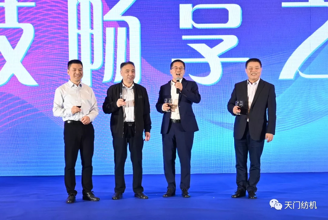 在12日的天門紡機(jī)“科技暢享之夜”答謝晚宴上,天門紡機(jī)總經(jīng)理助理?xiàng)钗姆逯略~。中國棉紡織行業(yè)協(xié)會(huì)會(huì)長董奎勇,天門紡機(jī)總經(jīng)理焦倫進(jìn),全國棉紡織科技信息中心主任、《棉紡織技術(shù)》期刊社社長劉強(qiáng),天門紡機(jī)總經(jīng)理助理?xiàng)钗姆骞餐瑸橥硌缱>啤?/span>