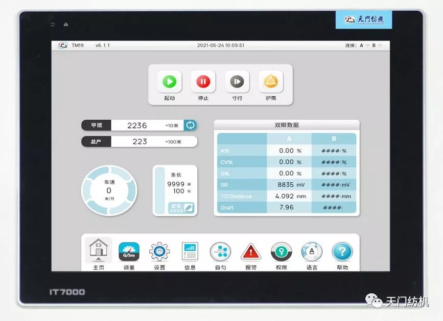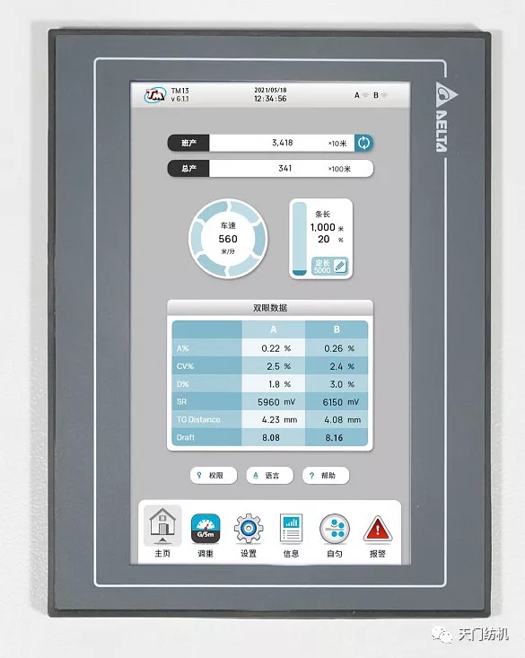 天門紡機在新一代T1系列并條機設計中,創(chuàng)新性地融入“系統(tǒng)化、人性化、圖形化”的設計理念。