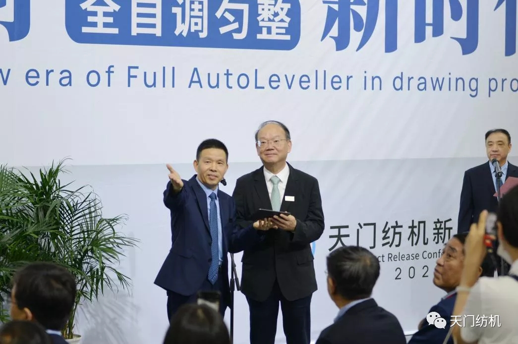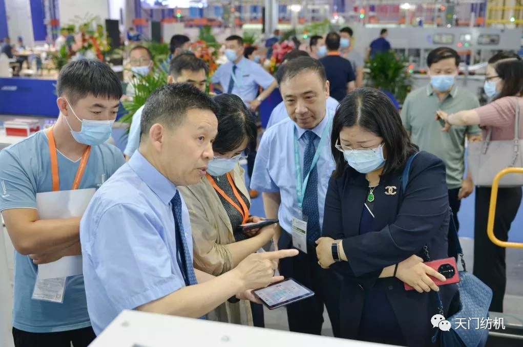 2021年6月12日,在上海國(guó)際紡機(jī)展上天門紡機(jī)舉行“開創(chuàng)并條工序全自調(diào)勻整新時(shí)代”新品發(fā)布會(huì),中紡聯(lián)黨委書記高勇使用手持終端為新產(chǎn)品開機(jī)