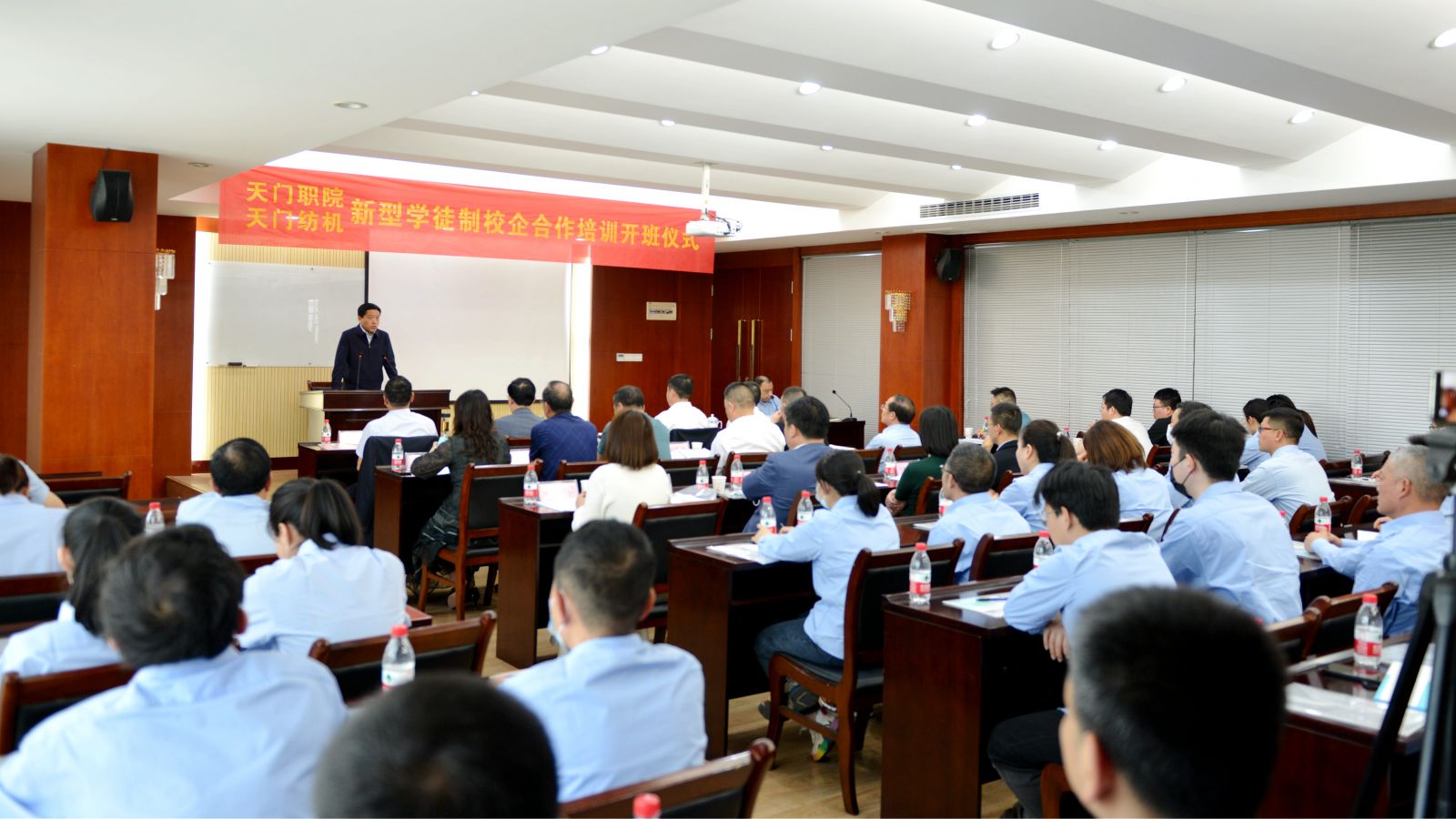 全國人大代表天門紡機董事長沈方勇在致辭中表達了對市委、市政府長期以來關心支持天門紡機發(fā)展的感激之情,并對高度重視人才工作、為企業(yè)引薦和培養(yǎng)人才的市人社局、市經(jīng)信局等職能部門表達了由衷地贊賞和誠摯地謝意。他從企業(yè)實施人才戰(zhàn)略、實現(xiàn)高質量發(fā)展的角度出發(fā),闡明了企校聯(lián)合開展新型學徒制技能人才培訓工作的必要性和重要性。同時,提了四點希望和要求:一是要把小事做大。培訓工作在企業(yè)生產(chǎn)經(jīng)營中只能算是一件小事,但涉及人才培養(yǎng)、關乎企業(yè)創(chuàng)新發(fā)展卻是一件大事。因此,天門紡機與天門職院聯(lián)合開辦的新型學徒制技能人才培訓一定要辦出特色,成為樣板,以便在全市推廣,擴大覆蓋面,起到更大的示范引領作用;二是把大事做好。要精心組織準備,落實教學方案;三是把好事做實。企校聯(lián)合辦學不是走秀,而是要實實在在開展工作,收到實效。對企業(yè)來說,實操比理論更重要;四是把實事做久。企業(yè)技能人才培訓工作不是一朝一夕就能完成的事情,我們要以企校聯(lián)合培訓為契機,形成企業(yè)人才培訓長效機制,久久為功。