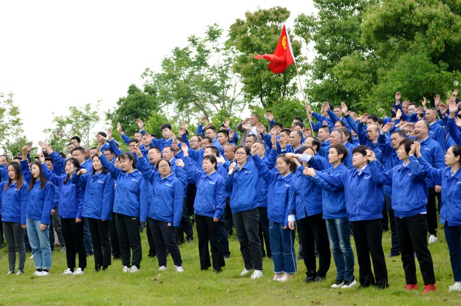 全公司大合唱“我和我的祖國”的“快閃行動”,把踏青之行推向高潮。340多名員工排成矩形從山坡上一瀉而下,嘹亮的歌聲傳遍四方,“我最親愛的祖國,你是大海永不干涸,永遠給我碧浪清波。”340多條手臂揮舞了起來,合著節(jié)拍,形成一股強大的力量。