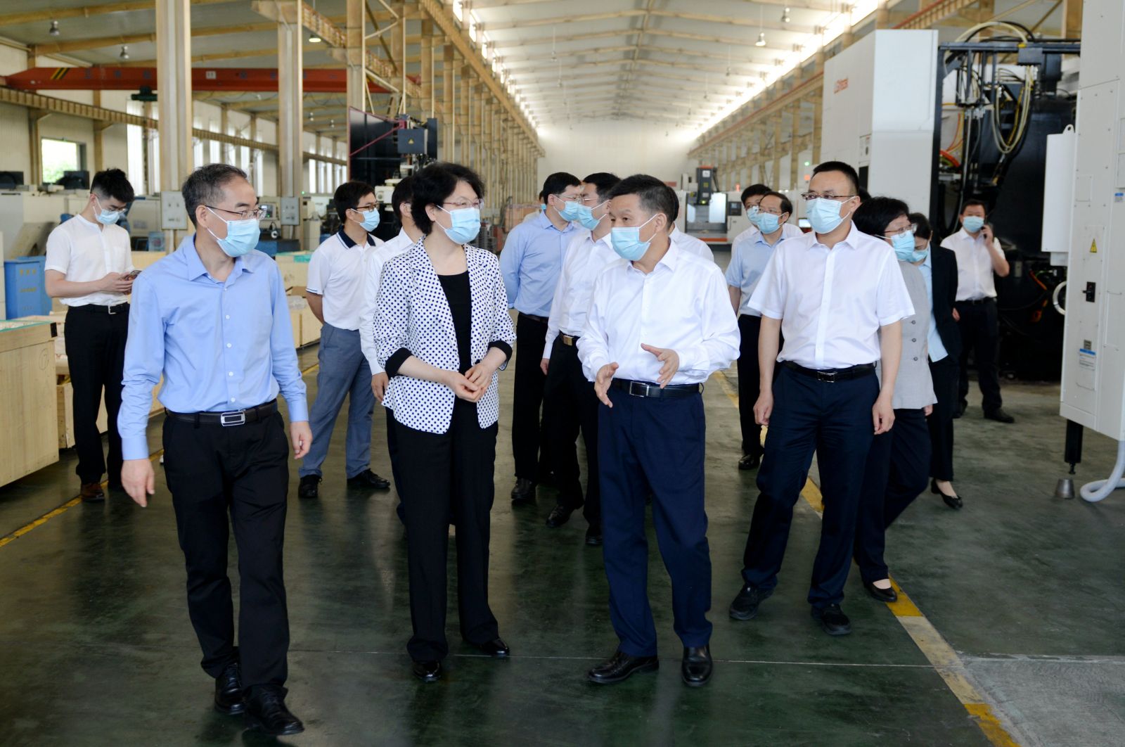 當(dāng)調(diào)研組來到天門紡機(jī)加工車間時,大家眼前一亮,一排排近期安裝到位的新設(shè)備高大威武,引人注目。沈方勇董事長向肖副省長介紹:從2020年開始,我們就著手推進(jìn)“智慧工廠”項目建設(shè),眼前的這些數(shù)控設(shè)備以進(jìn)口為主,大都是國內(nèi)外一流品牌。下一步我們將進(jìn)行信息化升級改造和倉儲物流自動化改造,最終實現(xiàn)生產(chǎn)制造柔性化、倉儲物流自動化、信息管理現(xiàn)代化。聽到天門紡機(jī)大手筆推進(jìn)技術(shù)改造的情況匯報,看到眼前一臺臺嶄新靚麗的設(shè)備,肖副省長十分欣慰,把隨行的省科技廳負(fù)責(zé)人叫到身邊,叮囑他們今后要多到企業(yè)調(diào)查研究,無論是資金還是技術(shù),一定要給予關(guān)心支持,落實落地有關(guān)科技扶助政策。