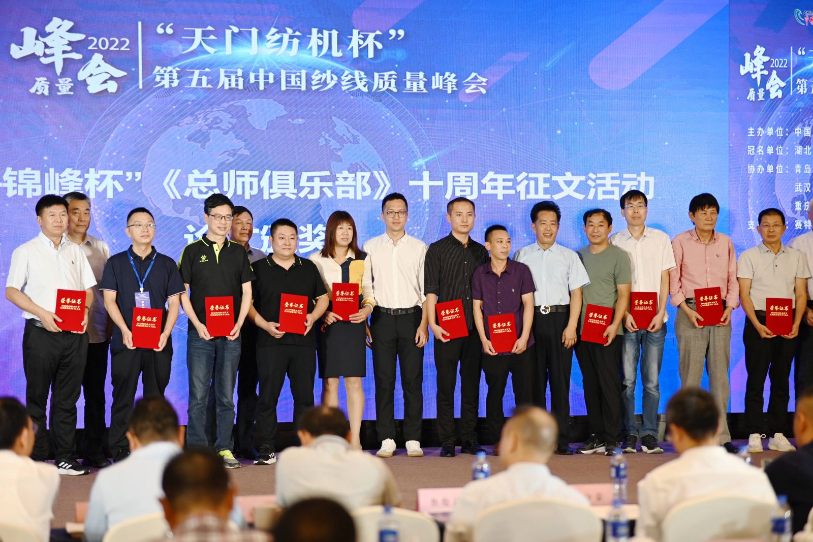 隨后,大會(huì)隆重舉行了“天門(mén)紡機(jī)杯”第五屆中國(guó)紗線質(zhì)量峰會(huì)論文頒獎(jiǎng)活動(dòng)和“烏斯特-錦峰杯”《總師俱樂(lè)部》十周年征文頒獎(jiǎng)活動(dòng)。