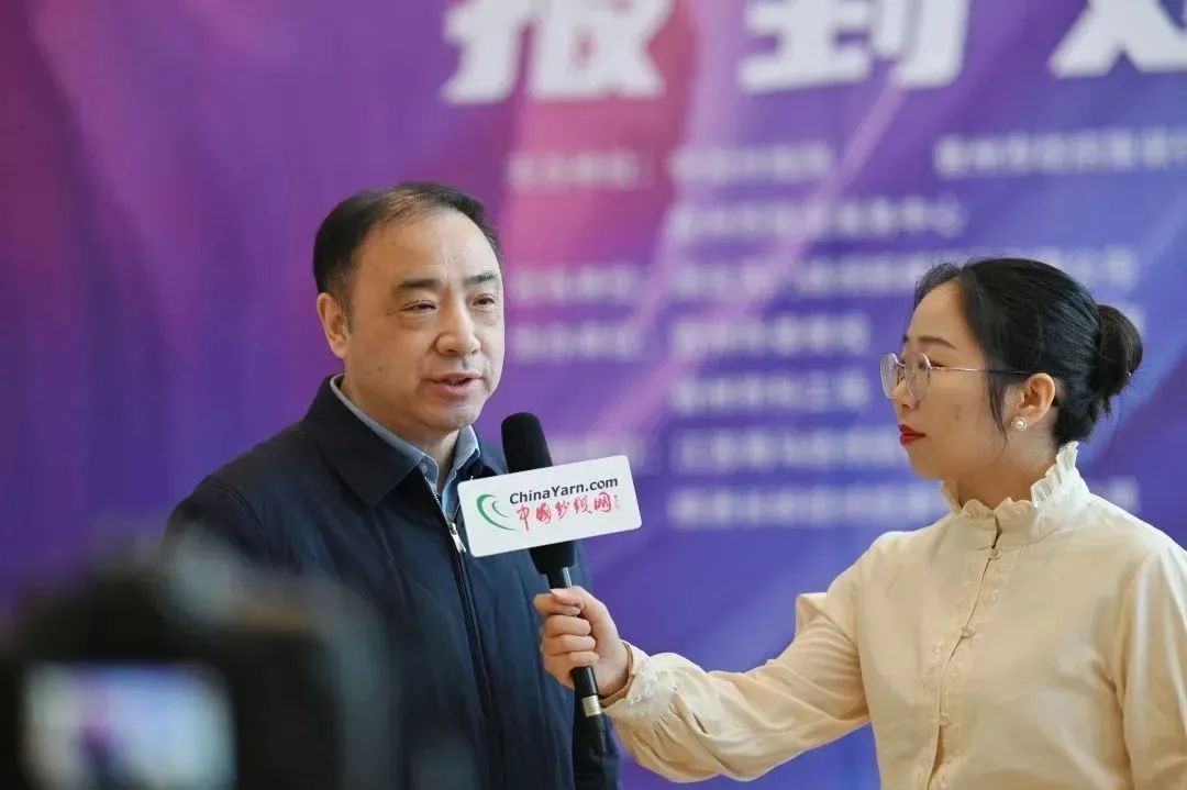 天門紡機總經(jīng)理焦倫進(jìn)會前接受中國紗線網(wǎng)采訪