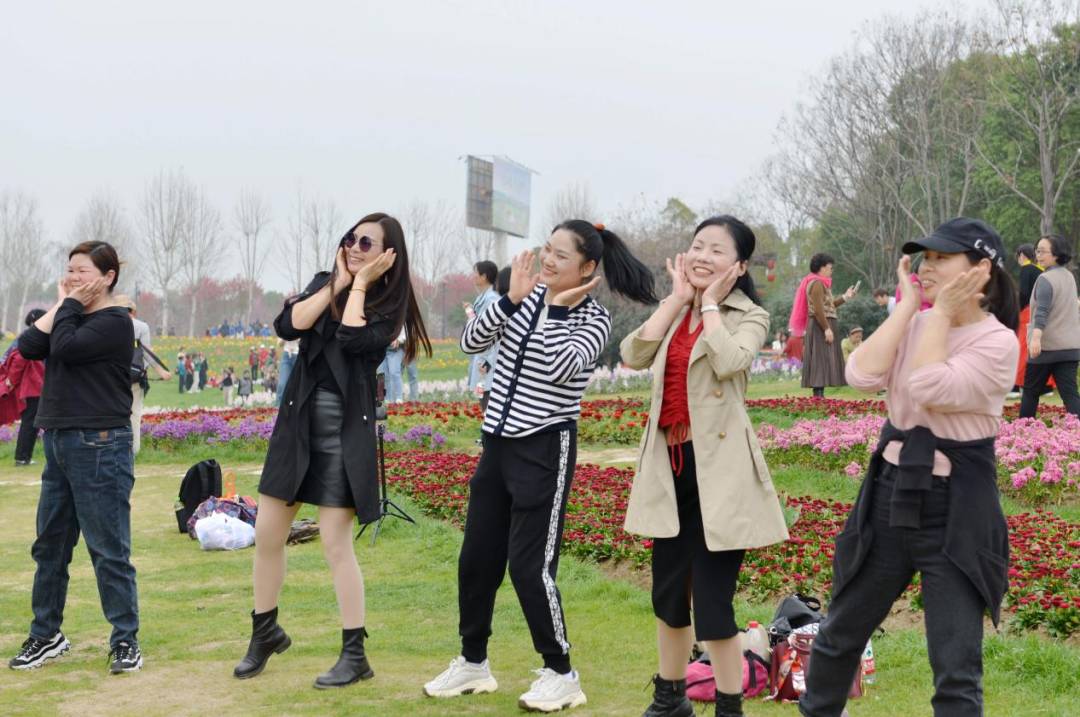 告別后官湖濕地公園,大家乘車來到武漢花博匯。展眼望去,這里已是花的海洋?;始页取⒓t馬克、紫云、陽光等眾多品種的郁金香爭奇斗艷,紫羅蘭、金盞菊、角堇、羽衣甘藍(lán)、雛菊等花卉也競(jìng)相綻放,一步一景,意趣橫生。大家沐浴著春風(fēng),淌洋在花間小道上,沉浸在芳香氤氳的浪漫之中。