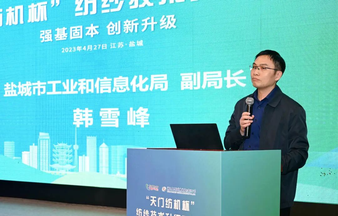 當(dāng)天下午,舉行了開(kāi)幕式及主題報(bào)告演講,鹽城市工業(yè)和信息化局副局長(zhǎng)韓雪峰、鹽城市紡織工業(yè)協(xié)會(huì)會(huì)長(zhǎng)戴俊等領(lǐng)導(dǎo)出席會(huì)議并分別致辭,他們對(duì)“天門(mén)紡機(jī)杯”的舉辦表示歡迎,希望通過(guò)本次活動(dòng),加強(qiáng)多地紡織企業(yè)的交流與探討,使鹽城更好地了解市場(chǎng)需求和技術(shù)趨勢(shì),探索鹽城紡織技術(shù)的創(chuàng)新與升級(jí)之路。