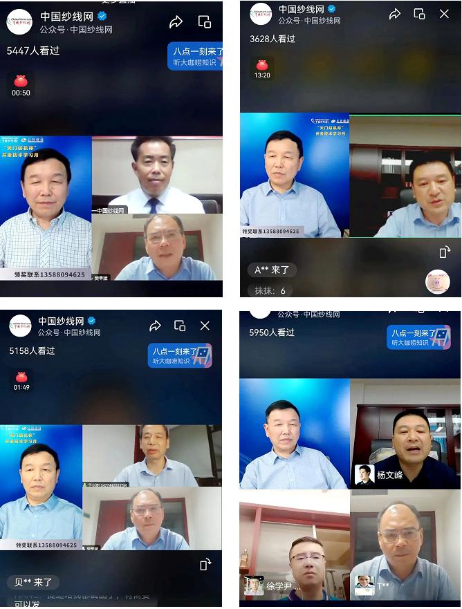 本次活動(dòng)進(jìn)行了6場(chǎng)直播。其間,天門紡機(jī)副總經(jīng)理?xiàng)钗姆寰图徔椦b備的發(fā)展趨勢(shì)作了深度剖析,分享了并條機(jī)牽伸形式、傳動(dòng)方式、換筒方式及自調(diào)勻整等方面的專業(yè)知識(shí);天門紡機(jī)品控總監(jiān)樊早斌、售后服務(wù)中心主任于少波分別就并條機(jī)操作、工藝要求、維護(hù)保養(yǎng)、常見問題排查等方面的知識(shí)和經(jīng)驗(yàn)進(jìn)行了交流。線上學(xué)習(xí)氛圍濃厚,平均每場(chǎng)都有近6千人參加學(xué)習(xí),總計(jì)超3萬余人。