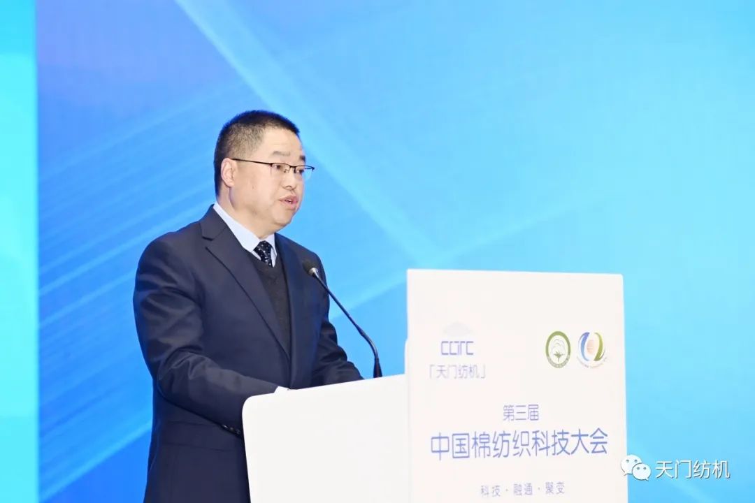 12月12日上午,中國(guó)棉紡織行業(yè)協(xié)會(huì)副會(huì)長(zhǎng)景慎全主持開幕式,中國(guó)棉紡織行業(yè)協(xié)會(huì)會(huì)長(zhǎng)董奎勇、湖北省經(jīng)濟(jì)和信息化廳副廳長(zhǎng)周開斌、全國(guó)棉紡織科技信息中心主任/《棉紡織技術(shù)》期刊社社長(zhǎng)王楊俊、天門紡機(jī)總經(jīng)理焦倫進(jìn)分別為大會(huì)致辭。