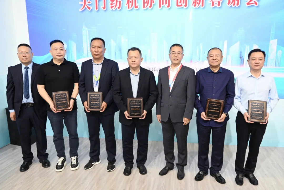 天門紡機(jī)總經(jīng)理焦倫進(jìn)宣布在協(xié)同創(chuàng)新中作出突出貢獻(xiàn)的單位和個(gè)人名單,中國紡織工業(yè)聯(lián)合會(huì)徐迎新副會(huì)長(zhǎng)為倪俊龍董事長(zhǎng)、陳冰教授、曹中華博士、陸惠文先生頒發(fā)紀(jì)念章,為臺(tái)達(dá)、匯川、南通五洲等3家企業(yè)代表頒發(fā)紀(jì)念牌。