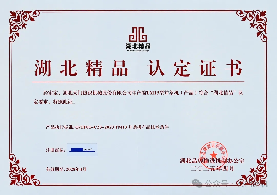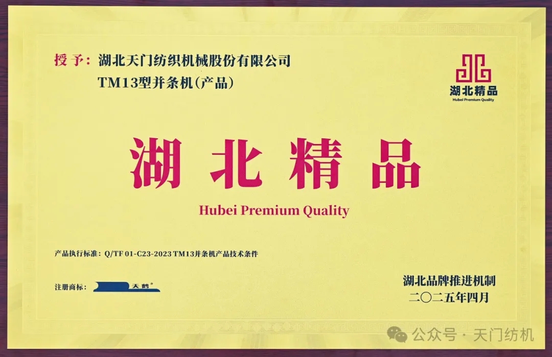 “湖北精品”作為湖北省卓越質(zhì)量品牌的杰出代表,已成為湖北品質(zhì)的圖騰。天門(mén)紡機(jī)產(chǎn)品入列“湖北精品”,就是對(duì)其匠心與創(chuàng)新精神的高度認(rèn)可。