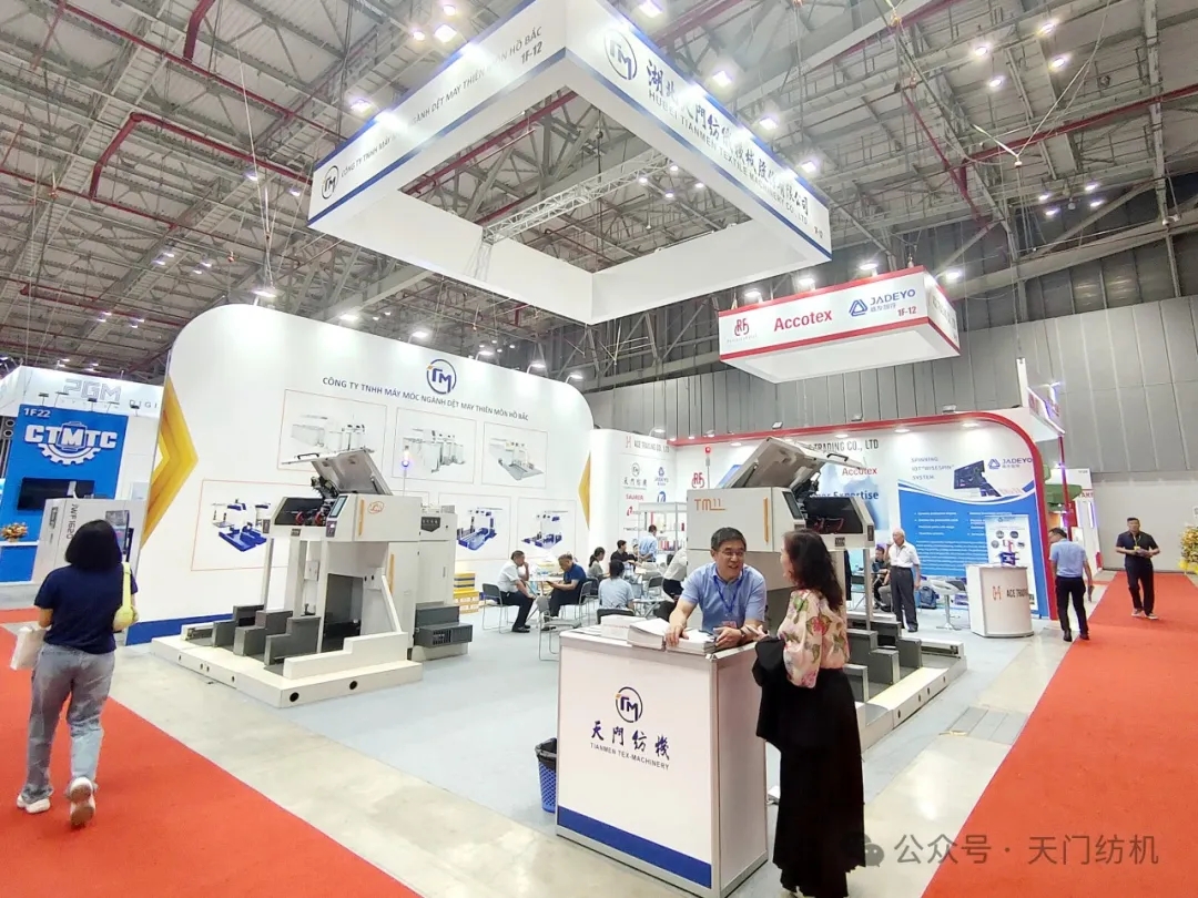 2025年4月,天門紡機以中國并條機標桿企業(yè)的姿態(tài),先后亮相兩場國際展會——4月9日-12日的越南胡志明紡織工業(yè)展覽會與4月15日-17日的印尼國際紡織服裝機械展覽會,憑借自主研發(fā)的TM11型、TM13型并條機驚艷全場,展位熱度持續(xù)攀升,進一步拓展海外市場。