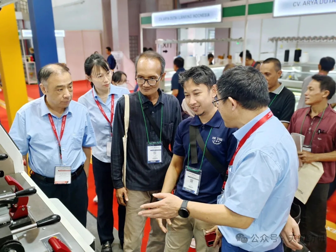 轉戰(zhàn)印尼雅加達,天門紡機的展位熱度不減。 PT.KAHATEX、PT.INDO、STEVEN TANUWIJAYA、PT.TEXMACH IMPEX、INDO LIBERTY TEXTILES PT等40余家紡企紛至沓來,深入探討技術細節(jié)與合作可能。展會上,公司不僅有效展示了最新的產品和技術,更是收獲了多份訂單。