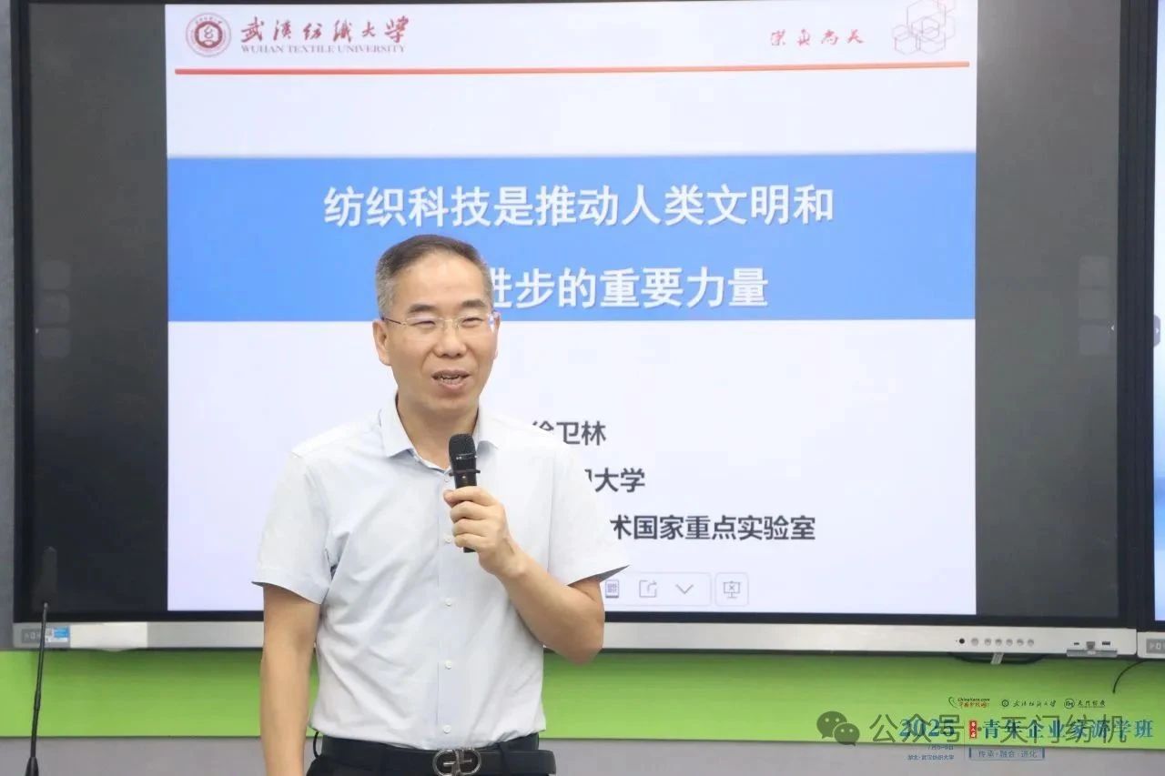 第一課由中國(guó)工程院院士、武漢紡織大學(xué)黨委書(shū)記徐衛(wèi)林主講,主題為《紡織科技是推動(dòng)人類(lèi)文明和社會(huì)進(jìn)步的力量》。他從紡織起源開(kāi)始娓娓道來(lái),貫通文化、品牌與時(shí)尚,深入剖析紡織科技的發(fā)展脈絡(luò)與未來(lái)趨勢(shì),為學(xué)員們帶來(lái)前瞻視野。