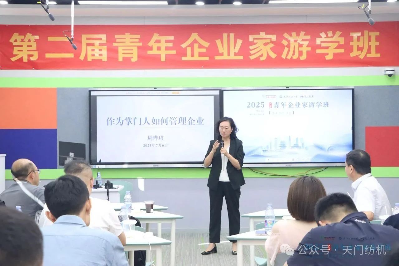 2025年7月5日-8日,天門(mén)紡機(jī)聯(lián)袂中國(guó)紗線(xiàn)網(wǎng)與武漢紡織大學(xué)成功舉辦了第二屆紡織青年企業(yè)家游學(xué)班,為二十余名青年企業(yè)家搭建學(xué)習(xí)交流平臺(tái),共繪發(fā)展藍(lán)圖。