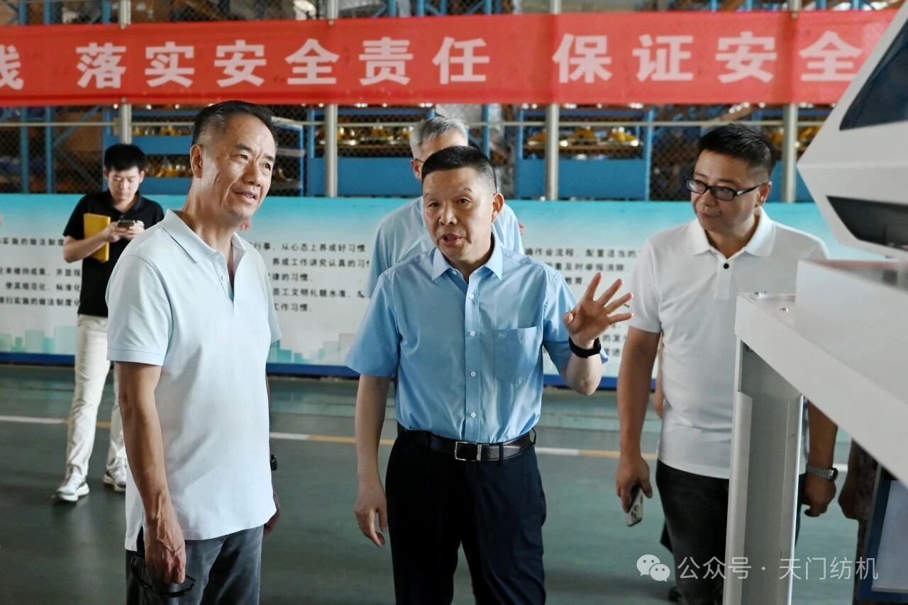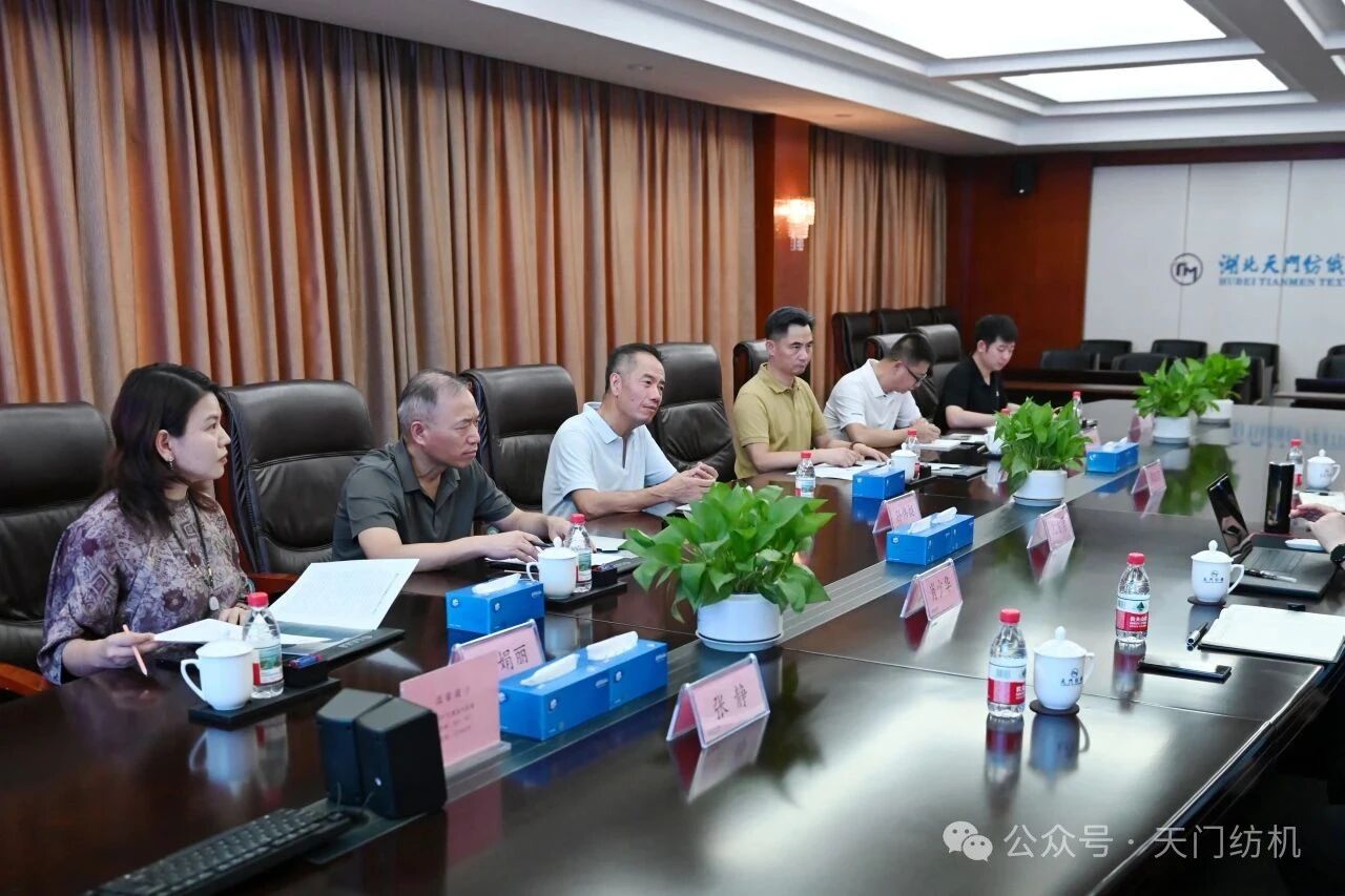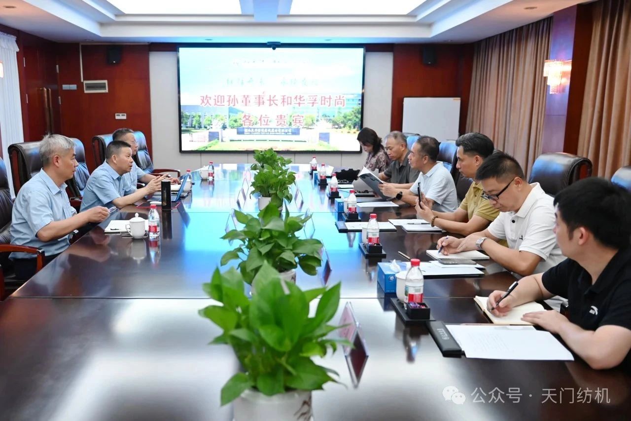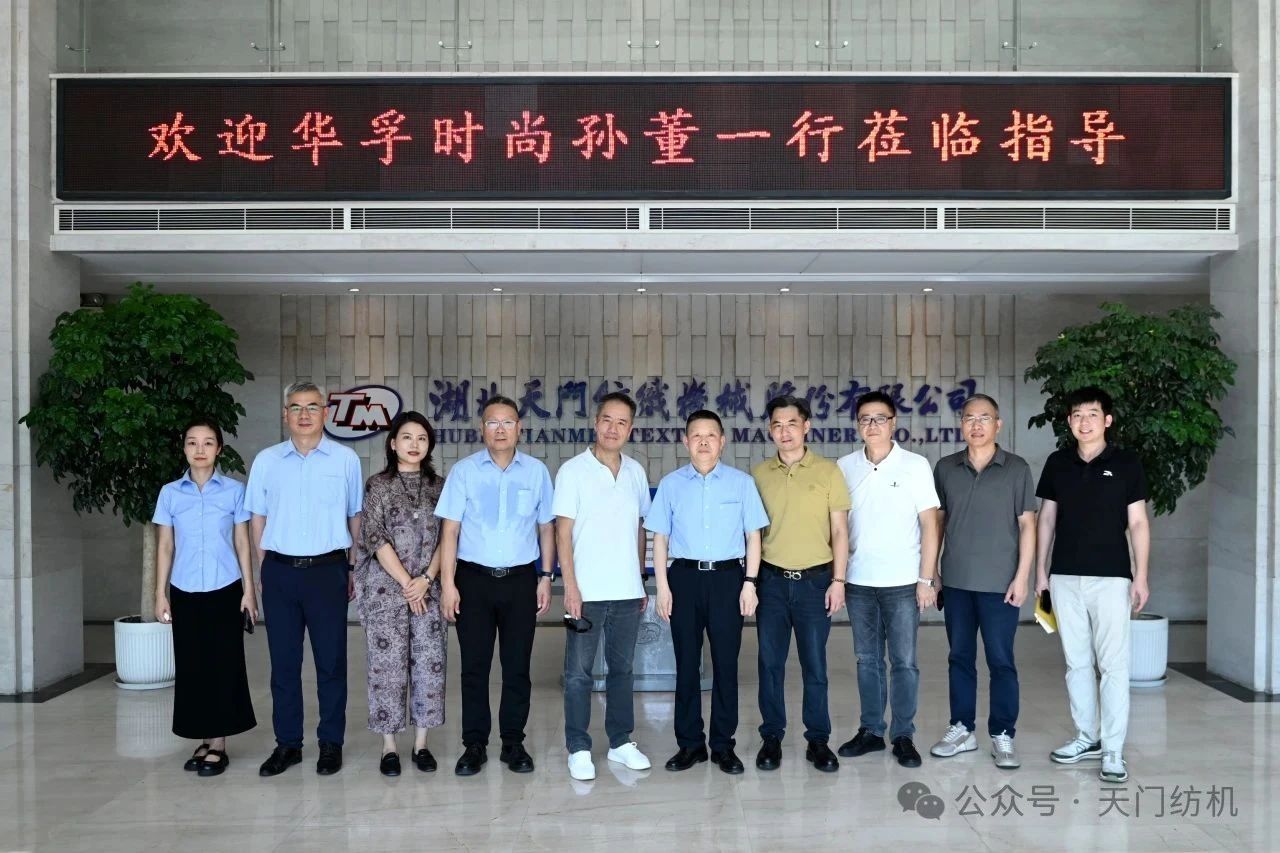 2025年8月26日,華孚時(shí)尚股份有限公司董事長(zhǎng)孫偉挺一行6人專(zhuān)程到訪天門(mén)紡機(jī)進(jìn)行考察交流。公司董事長(zhǎng)沈方勇等領(lǐng)導(dǎo)熱情接待到訪客人,雙方圍繞行業(yè)形勢(shì)及協(xié)同發(fā)展等議題進(jìn)行了深入交流,并就淮北及越南等新建項(xiàng)目的再次合作達(dá)成意向。