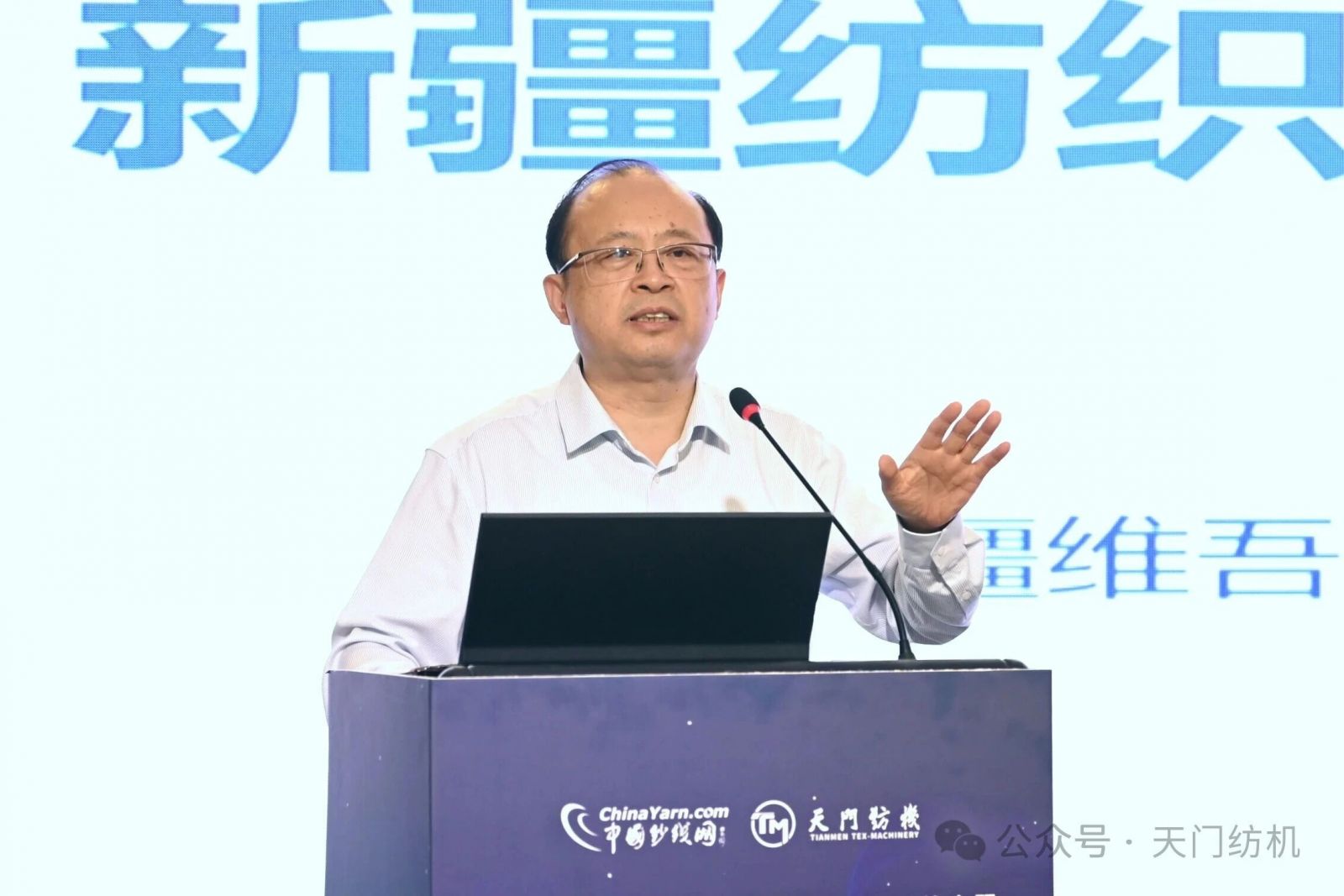 本次會議由天門紡機冠名,中國紗線網(wǎng)與新疆維吾爾自治區(qū)紡織工程學(xué)會共同主辦,全國政協(xié)委員、新疆維吾爾自治區(qū)棉花產(chǎn)業(yè)發(fā)展領(lǐng)導(dǎo)小組辦公室主任梁勇,新疆生產(chǎn)建設(shè)兵團第三師圖木舒克市黨委常委、副師長丁偉,天門紡機董事長沈方勇,中國紗線網(wǎng)總編王果剛等400余位領(lǐng)導(dǎo)、專家及代表參加會議,同步開啟的在線直播超過1萬人收看。