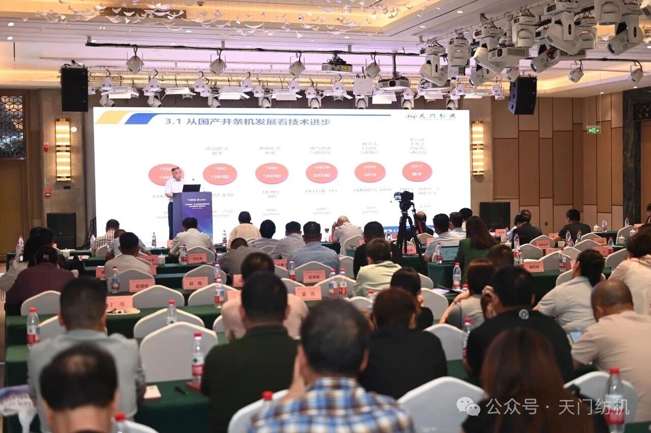 天門紡機總經(jīng)理焦倫進在《并條機的創(chuàng)新與應(yīng)用助力紡企高質(zhì)量發(fā)展》報告中解析了并條機技術(shù)發(fā)展與創(chuàng)新方向,分享了天門紡機在核心技術(shù)上加快迭代的心得體會,展示了自調(diào)勻整技術(shù)在并條工序上的應(yīng)用成果。他強調(diào),并條機作為關(guān)鍵設(shè)備,其技術(shù)突破對紡織企業(yè)降本增效、實現(xiàn)高質(zhì)量發(fā)展具有基礎(chǔ)支撐作用。