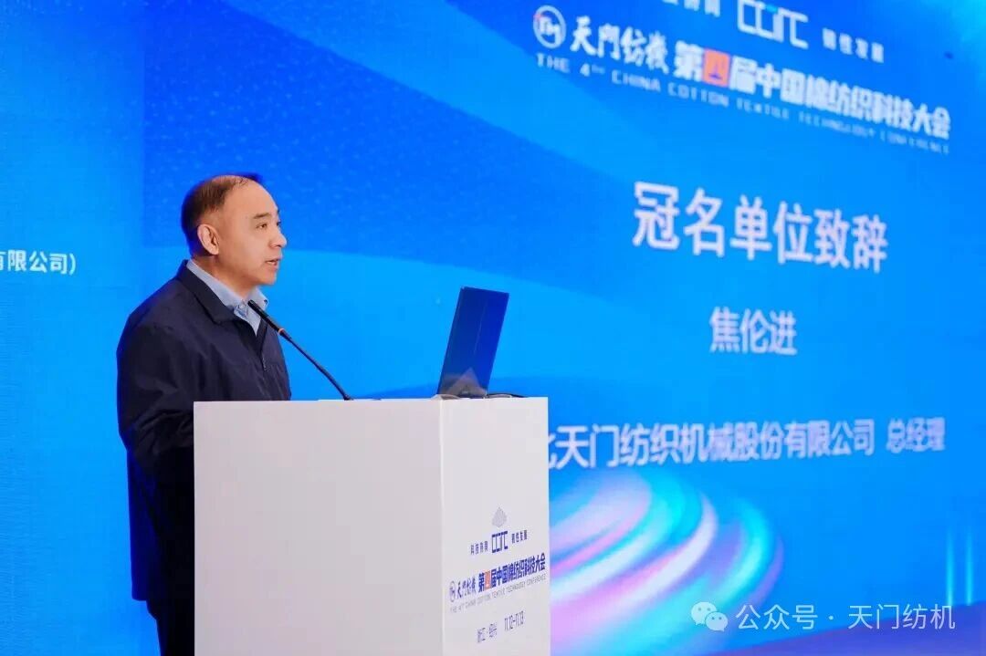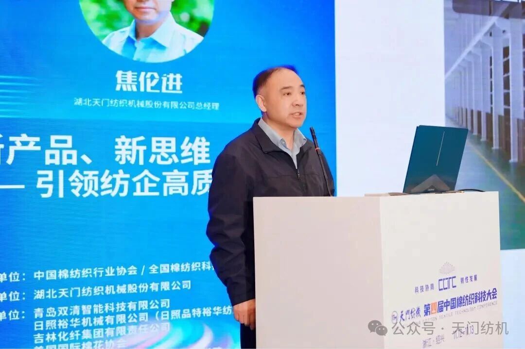 天門(mén)紡機(jī)總經(jīng)理焦倫進(jìn)代表冠名單位致辭。他表示,40余年來(lái),天門(mén)紡機(jī)秉持“并條做精、企業(yè)做強(qiáng)”初心,深耕并條機(jī)領(lǐng)域,以優(yōu)質(zhì)產(chǎn)品、服務(wù)及品牌引領(lǐng)行業(yè)發(fā)展。其雙眼自調(diào)勻整并條機(jī)已在棉紡企業(yè)廣泛推廣應(yīng)用,顯著提升了紗線質(zhì)量與生產(chǎn)效率,成為紡紗企業(yè)必備裝備;“并條工序全自調(diào)勻整”理念亦獲得客戶認(rèn)可,有效改善紗線和布面質(zhì)量。在技術(shù)創(chuàng)新方面,天門(mén)紡機(jī)成果豐碩,TM1系列并條機(jī)已成紡織行業(yè)主力產(chǎn)品,T2系列產(chǎn)品正逐步推向市場(chǎng),搭載智能在線檢測(cè)、一控多軸多臺(tái)及數(shù)據(jù)管理云平臺(tái)技術(shù)的“產(chǎn)線聯(lián)動(dòng)”并條機(jī)引起了業(yè)界廣泛關(guān)注。同時(shí),天門(mén)紡機(jī)全力推進(jìn)“智改數(shù)轉(zhuǎn)”,“智慧工廠”項(xiàng)目正在如火如荼地建設(shè)之中。他指出,天門(mén)紡機(jī)始終關(guān)注行業(yè)的最新動(dòng)態(tài)和前沿技術(shù),希望與業(yè)界加強(qiáng)溝通與合作,攜手發(fā)展。